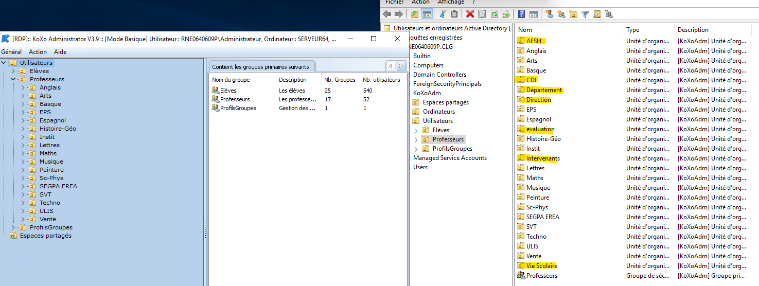 Il a créé des groupes secondaires avec des comptes dedans. Mais depuis la rentrée, certains de ces groupes n'appareissent plus dans Koxo administrator. Pourtant, ils sont bien réels et sont dans l'AD dans le groupe KoxoAdm. Les comptes fonctionnent normalement.