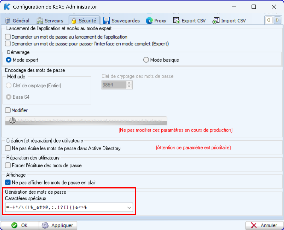 La version 4.0 (à venir) permet de configurer les caractères utilisés dans les algorithmes de génération de mots de passe.