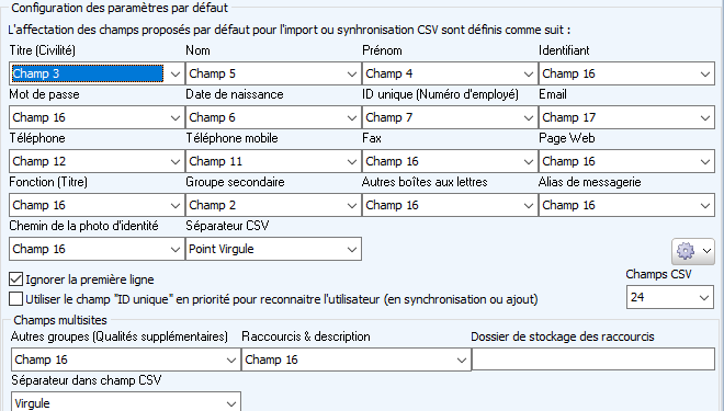 Depuis plusieurs années nous avions fixé la configuration des champs par défaut lors des imports CSV des bases SIECLE et STS avec le profil "Export CSV ARENA SIECLE ex SCONET". Aujourd'hui en réalisant l'import et la synchronisation destructive du mois de novembre je me suis rendu compte (après synchro malheureusement) que certains champs de l'onglet "Import CSV" avaient été modifiés, avec notamment un "Champ 16" qui s'est ajouté à la place du mot de passe (voir les deux confs en PJ).