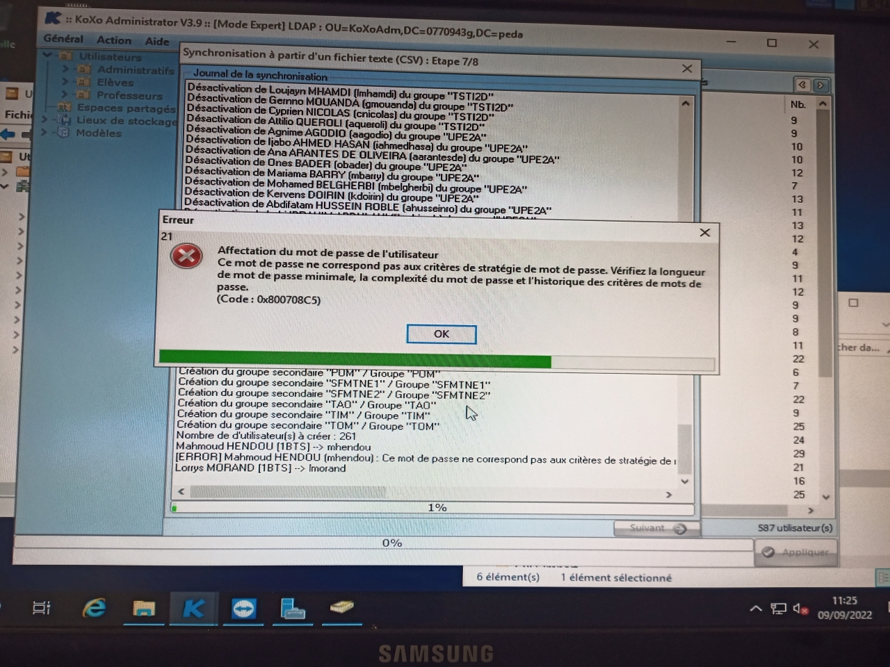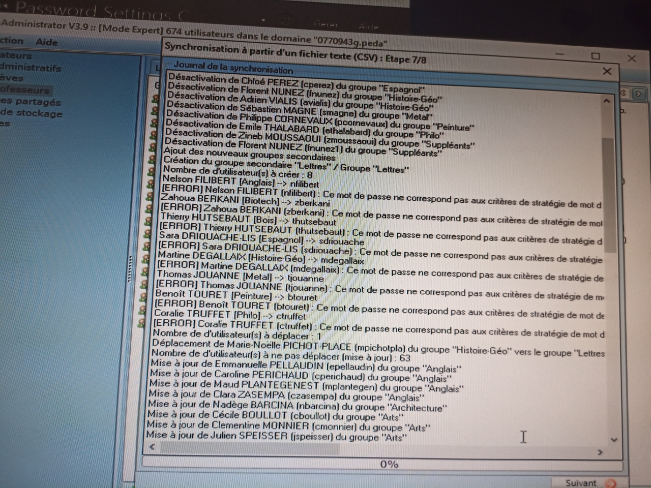 J'ai pourtant vérifié les mots de passes (lors de la synchronisation) . ET je n'ai pas le souci sur les Administratifs ??